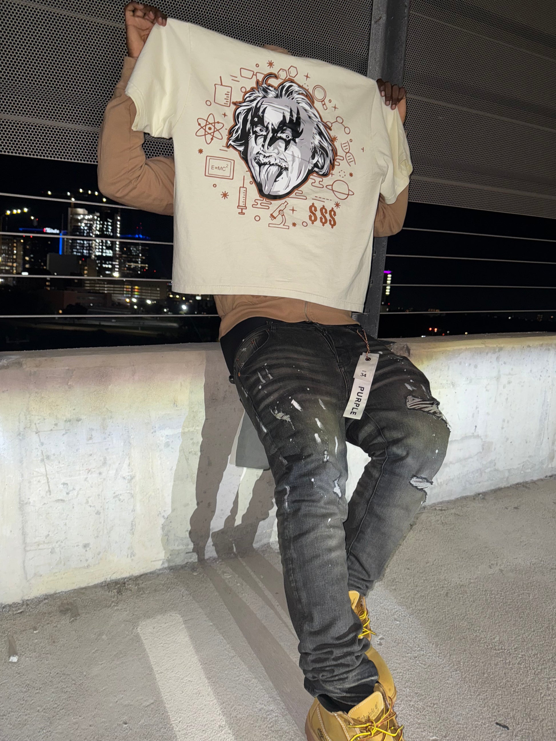 Unleash your inner genius with the Mad Scientist Tee — where chaos meets creativity. Featuring a bold graphic of a wild scientist surrounded by scientific icons and street-style flair, this oversized beige tee blends intellect and rebellion. With red “Learn” and “Multiply” sleeve prints and the standout number 22 on the front, it’s designed for those who think differently and move boldly.